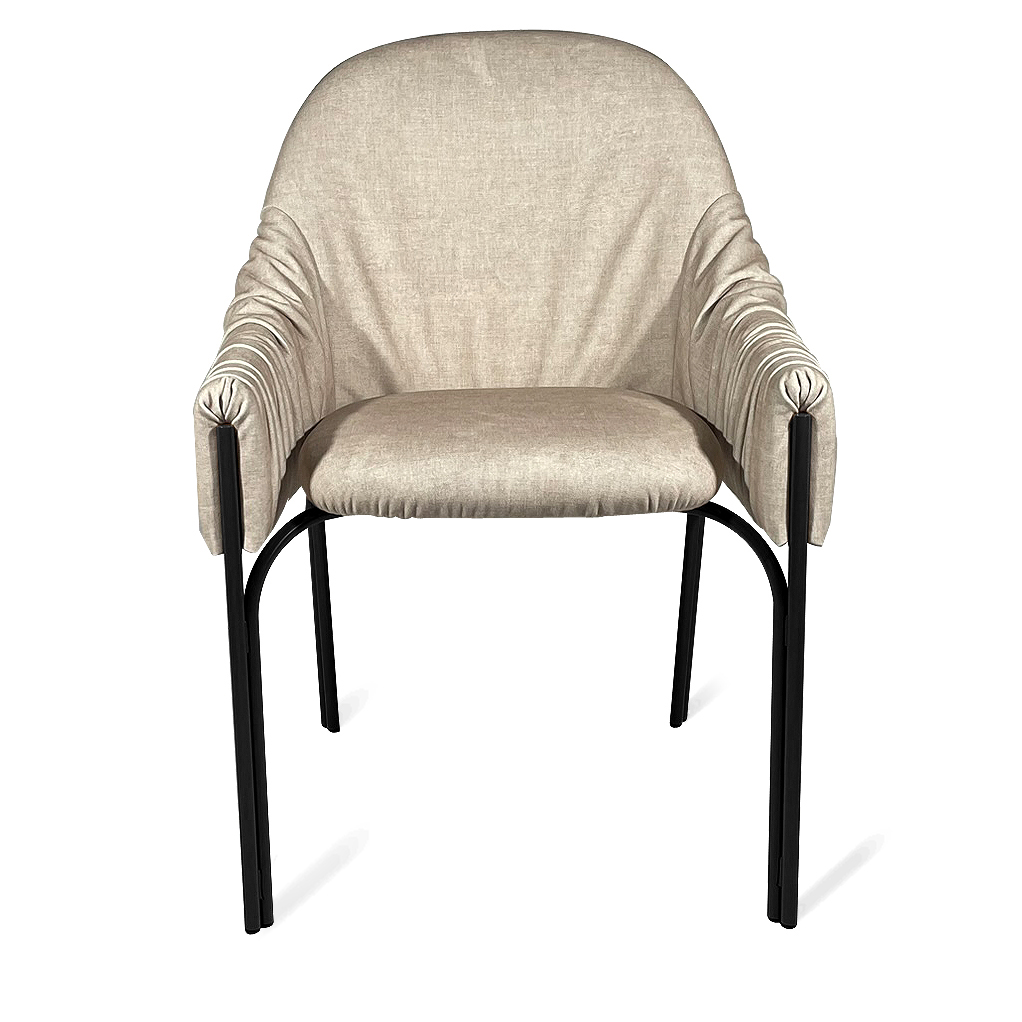 Das Besondere an Celine ist der spannende Kontrast zwischen straffem und gerafftem Material. Dieser Übergang verleiht dem Stuhl eine faszinierende Dynamik. Der opulente Faltenwurf wirkt leicht und verspielt, während die straff bezogene, freischwebende Sitzfläche und die filigranen Stuhlbeine mit ihrer klaren Linienführung für einen zeitlos eleganten Look sorgen.