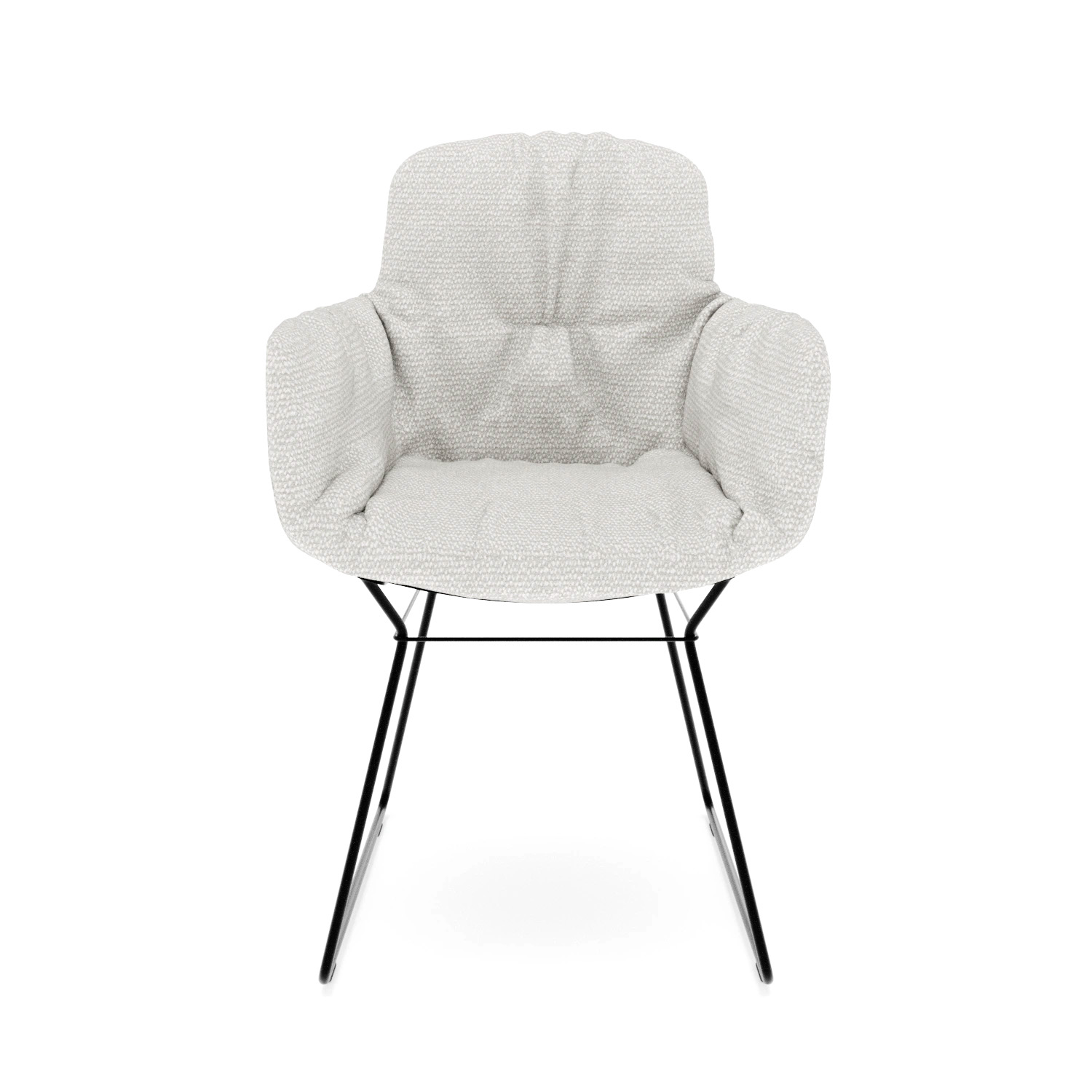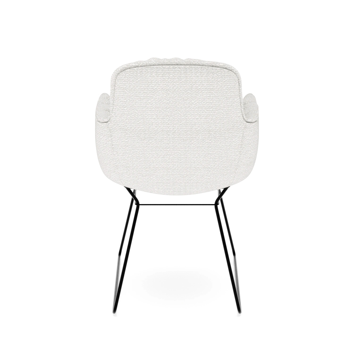 Getragen wird die gepolsterte Sitzschale von einem filigranen Drahtgestell 1.1 in Tiefschwarz (ME001), das dem Design Leichtigkeit verleiht und für Stabilität sorgt, ohne sich in den Vordergrund zu drängen. Ausgestattet mit Kunststoffgleitern eignet sich der Leya Armchair High ideal für verschiedene Bodenbeläge und lässt sich mühelos verschieben.