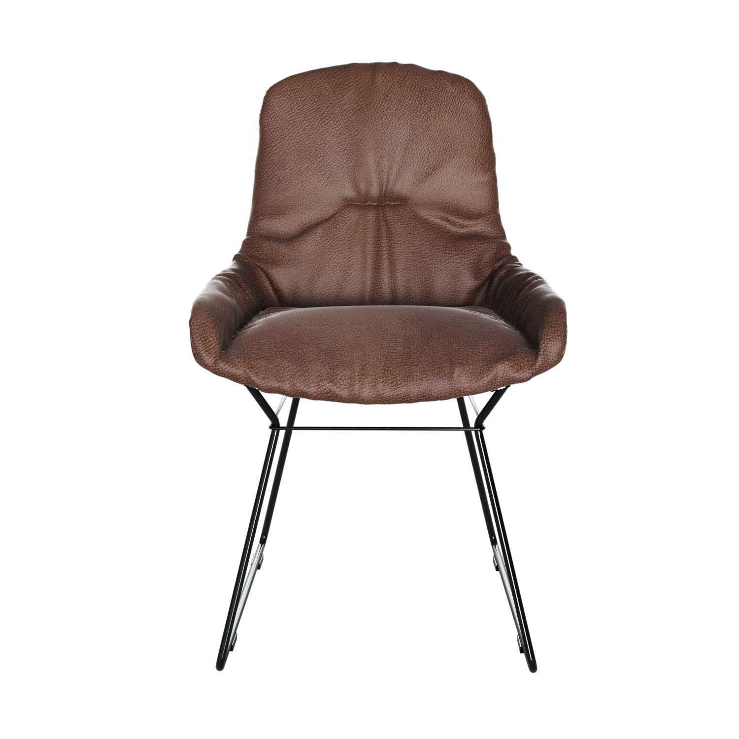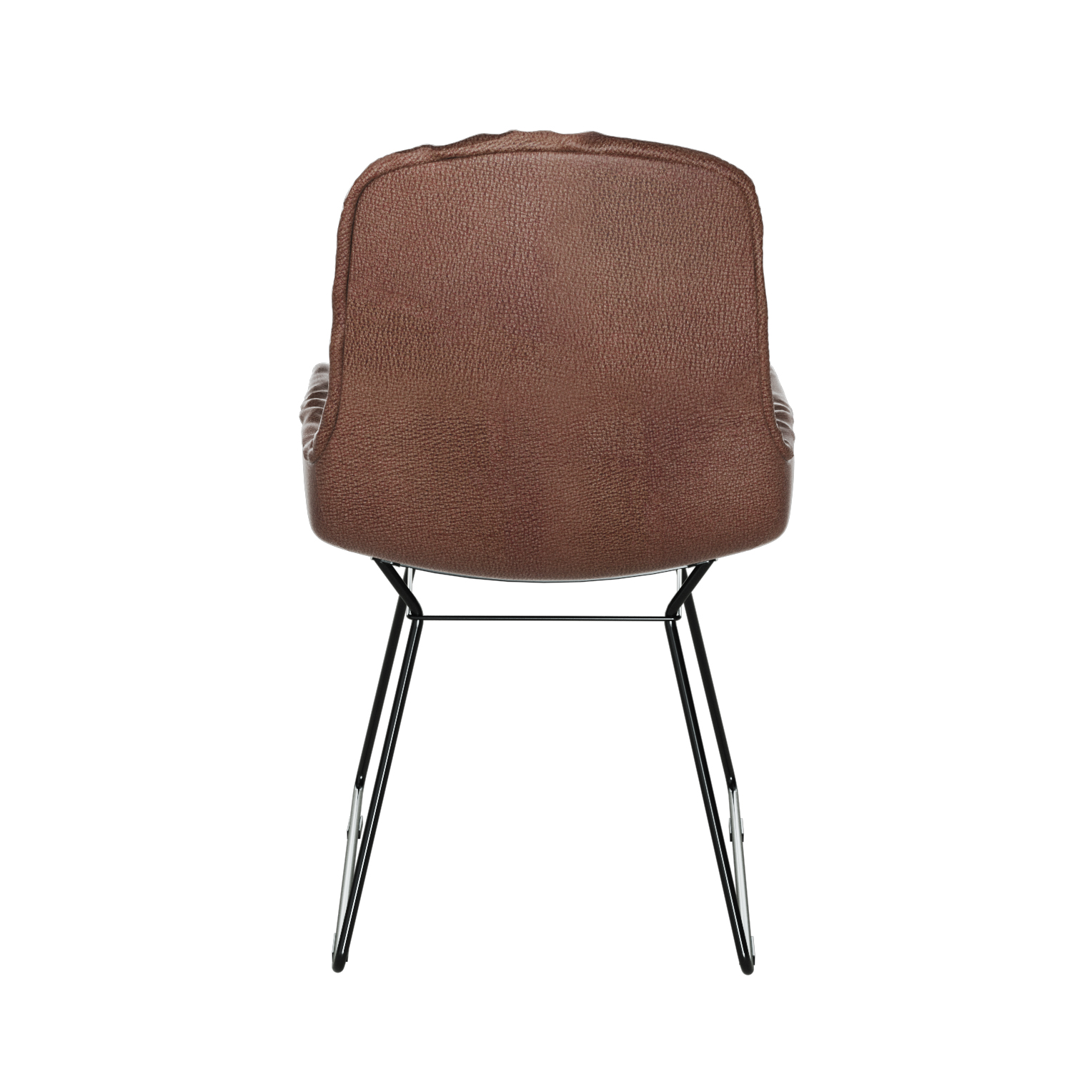 Dieser Stuhl vereint auf einzigartige Weise Gegensätze. Seine straff gepolsterte Schale wirkt klar und gradlinig, doch das Innere birgt ein flauschiges Kissen, das bei jedem Sitzen für ein umhüllendes und komfortables Erlebnis sorgt. Der Bezug aus hochwertigem Leder Sahara Coffee verleiht dem Stuhl eine großzügige und einladende Polsterung, die ultimativen Sitzkomfort garantiert.