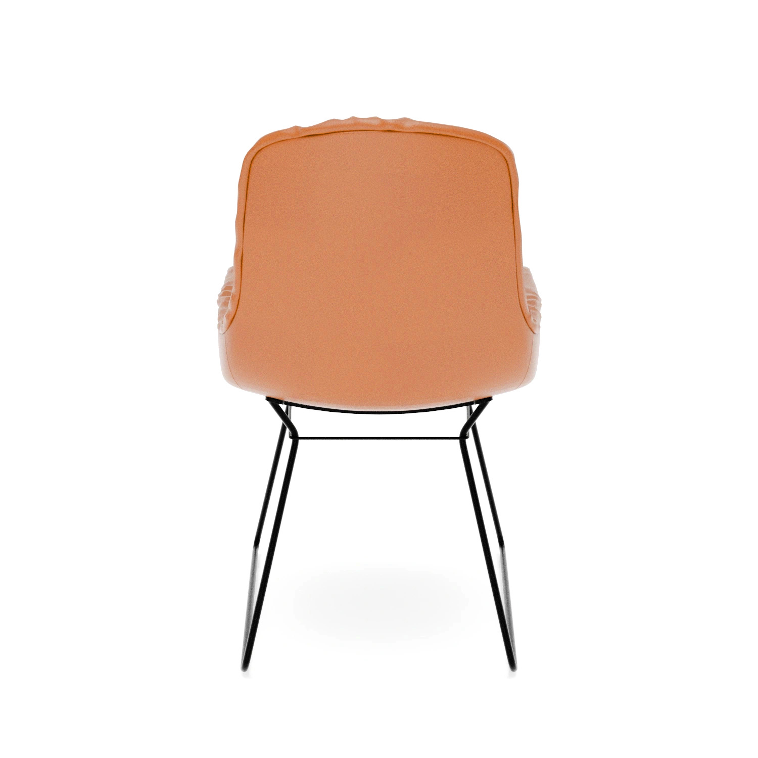 Das filigrane Drahtgestell verleiht dem Stuhl eine elegante Leichtigkeit und setzt einen spannenden Kontrast zur weich gepolsterten Sitzschale.
