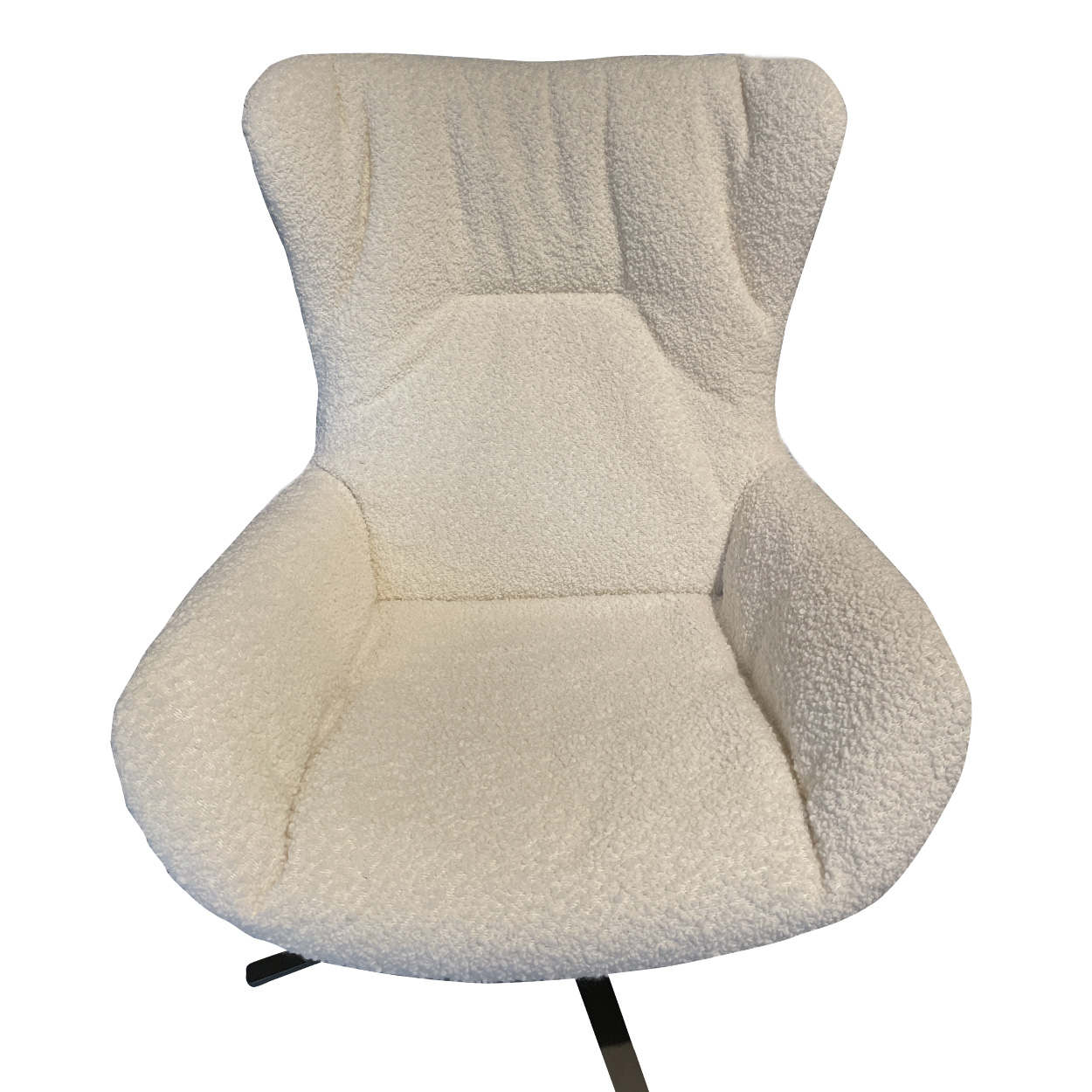 Das Fußkreuzgestell aus Stahl mit edler Bronze-Lasur verleiht dem Sessel ein warmes, hochwertiges Finish. Dank der integrierten Wipp-/Kippmechanik passt sich der Sessel sanft den Bewegungen des Körpers an und sorgt für ein dynamisches und besonders komfortables Sitzerlebnis – ideal für lange Gespräche, entspannte Stunden oder konzentriertes Arbeiten.