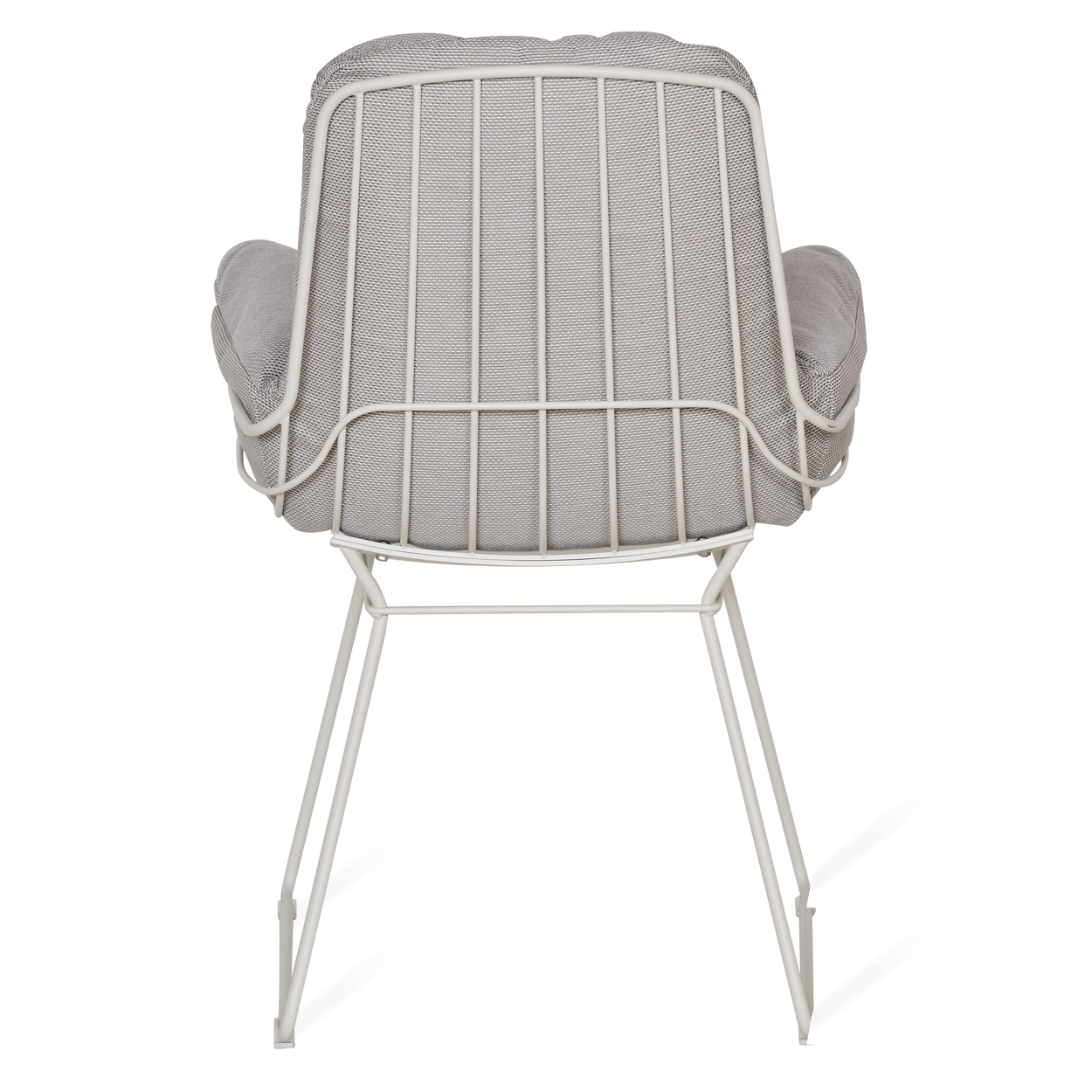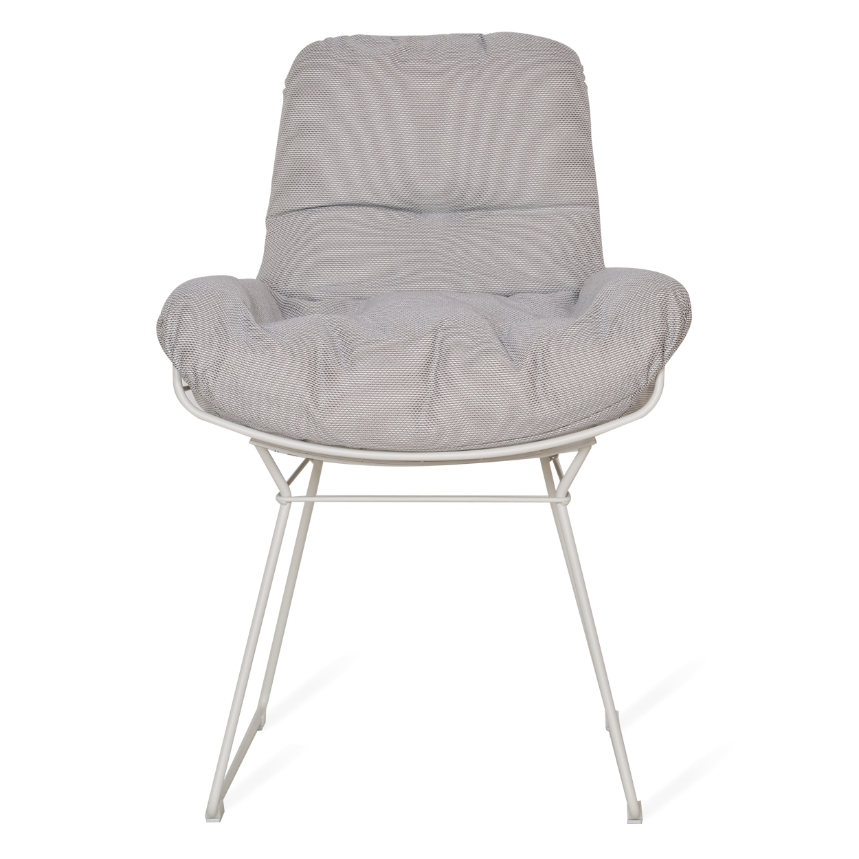 einem filigranen, wetterbeständigen Drahtgestell nachgeahmt, so dass die typische Schalenform erhalten bleiben konnte. Die abnehmbaren Auflagen können mit Materialien für Innen und Außen ausgestattet werden.