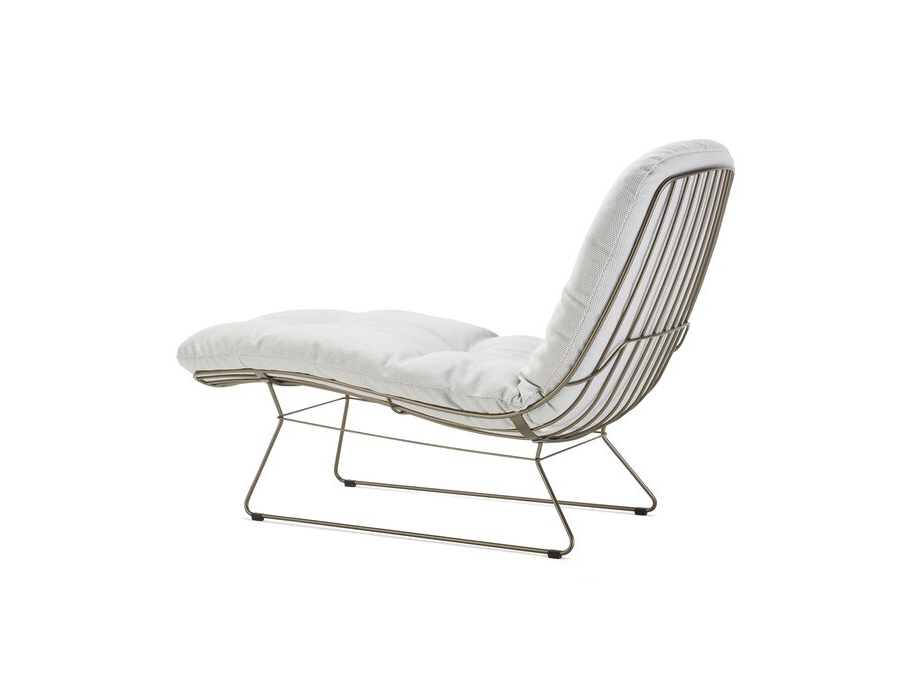 Das filigrane Drahtgestell aus Stahl in Bronze Lasur verleiht dem Lounger eine luftige Leichtigkeit und zugleich hohe Stabilität. Die spezielle Lasur schützt das Gestell zuverlässig vor Witterungseinflüssen und sorgt für eine elegante Patina mit Tiefenwirkung.