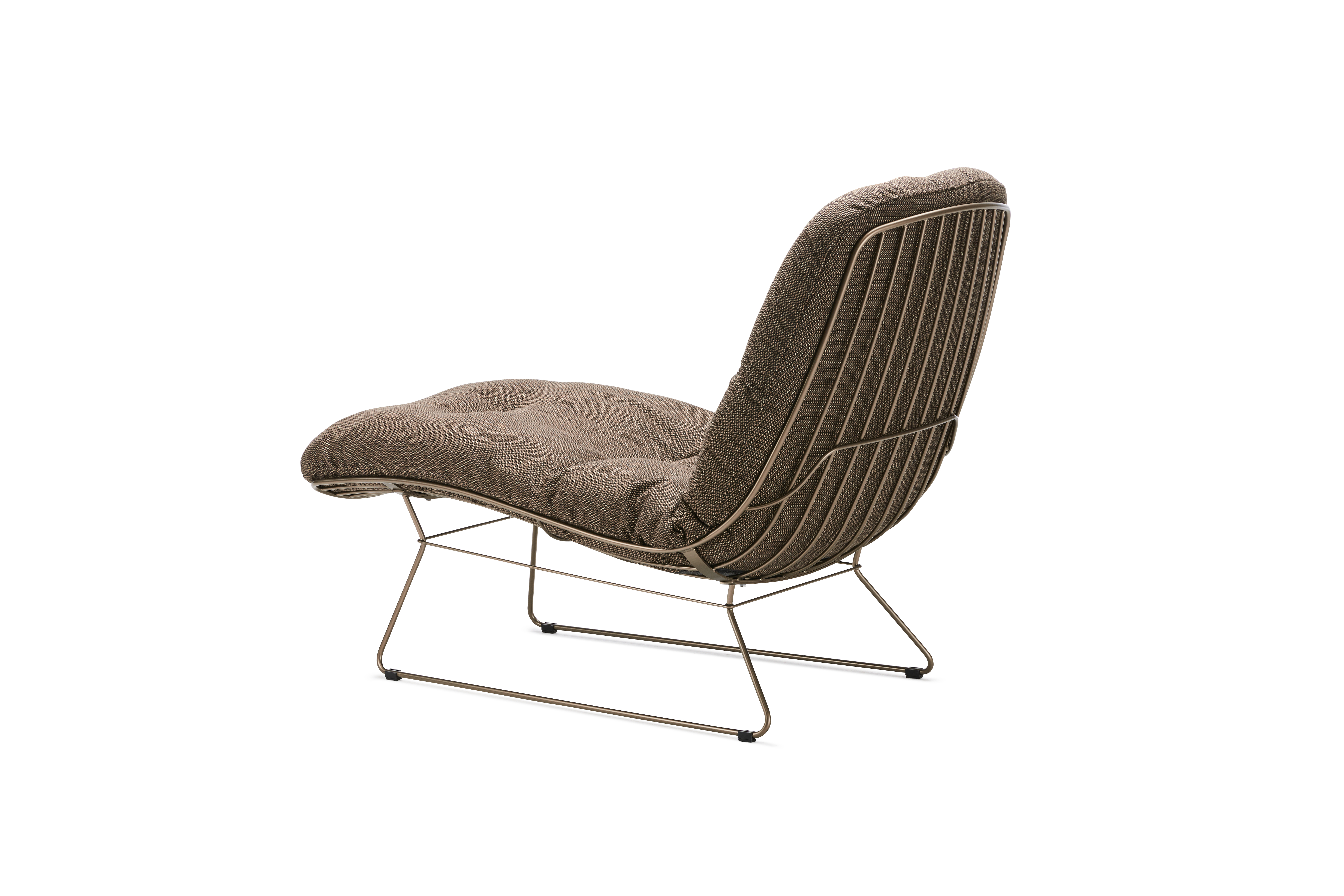 Das filigrane Drahtgestell aus Stahl in Bronze Lasur verleiht dem Lounger eine luftige Leichtigkeit und zugleich hohe Stabilität. Die spezielle Lasur schützt das Gestell zuverlässig vor Witterungseinflüssen und sorgt für eine elegante Patina mit Tiefenwirkung.