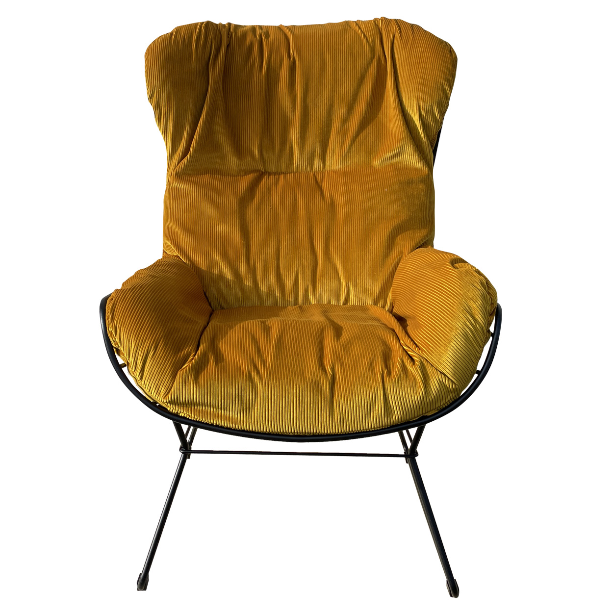 Der Freifrau Leyasol Wingback Chair verbindet außergewöhnlichen Sitzkomfort mit einem luftigen, modernen Design. In der Variante Uni und vollständig bezogen mit dem lebendigen Stoff Riga M1 in Curry 01 zieht dieser Sessel alle Blicke auf sich – sowohl auf der Sitz- als auch auf der Rückseite. Die warme Curry-Farbgebung verleiht dem Möbelstück eine einladende, sonnige Ausstrahlung und lässt es mühelos in verschiedenste Wohn- und Outdoor-Konzepte integrieren.Das charakteristische Drahtgestell in Tiefschwarz (ME001) bildet einen stilvollen Kontrast zum textilen Bezug und sorgt gleichzeitig für Stabilität und Leichtigkeit. Typisch für die Leyasol-Kollektion überzeugt auch dieser Wingback Chair durch seine elegante, schwebende Ästhetik und die einzigartige Formgebung, die zum entspannten Zurücklehnen einlädt. Ausgestattet mit Kunststoffstuhlgleitern ist der Sessel besonders bodenschonend und flexibel einsetzbar – ob im Wohnbereich, Lounge, Wintergarten oder geschützten Außenbereich.