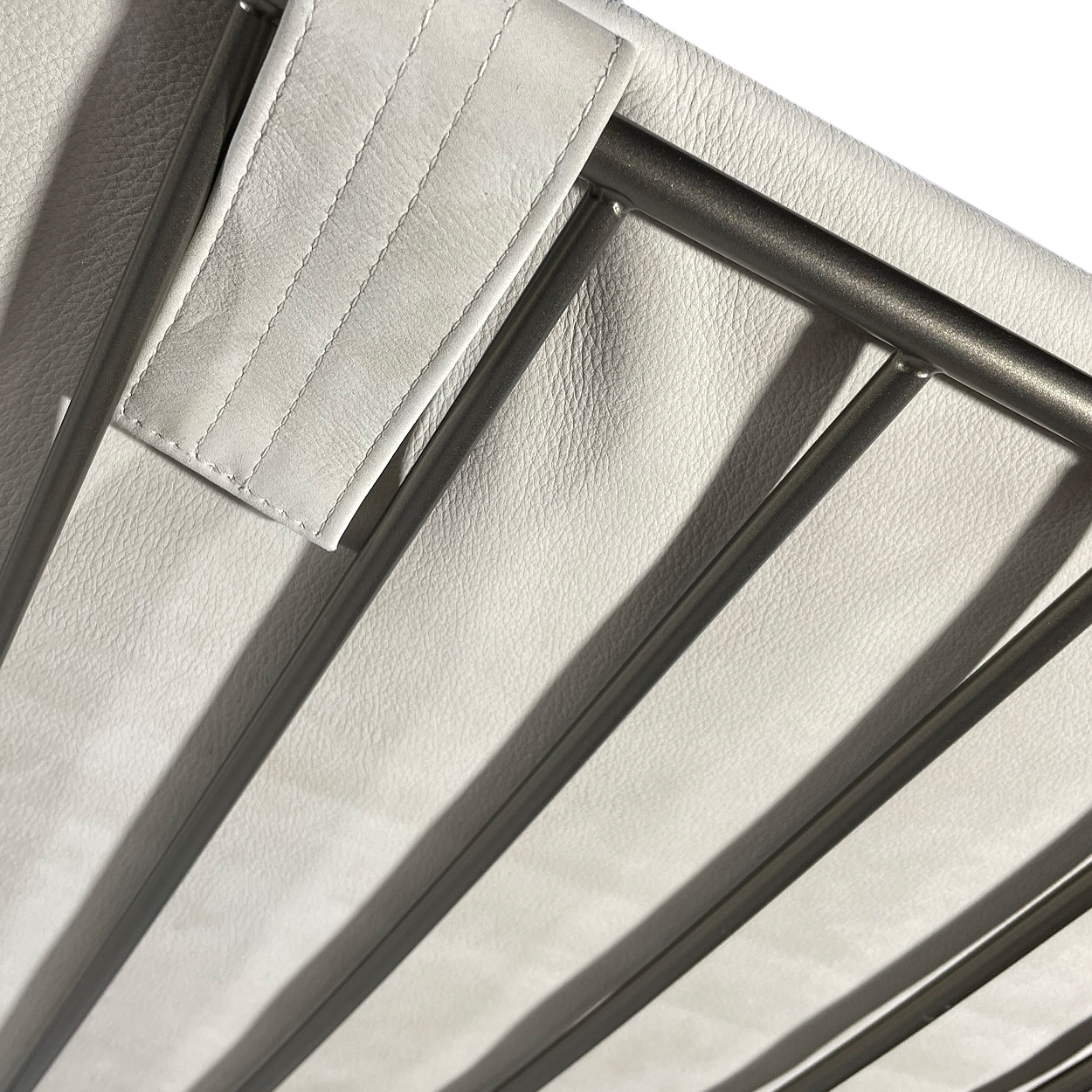 Langlebigkeit und Robustheit. Das Gestell besteht aus einem korrosionsbeständigem Aluminiumrahmen und die abnehmbaren Polsterauflagen sind abziehbar. Ohne Auflagen wirkt Leyasol wie ein Kunstwerk und Metallobjekt zugleich.