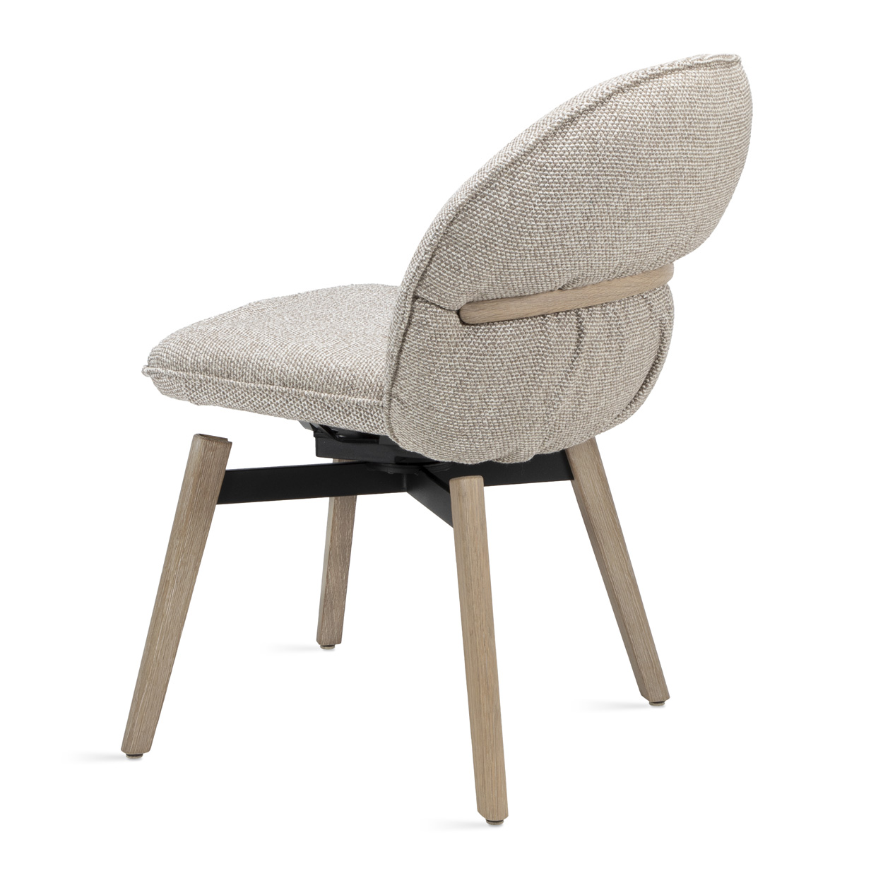 Das filigrane Holzgestell aus Eiche, geölt in der Ausführung WD001, verleiht dem Stuhl natürliche Wärme und Stabilität. Die sorgfältige Verarbeitung des Gestells betont den handwerklichen Anspruch der Freifrau-Kollektion und sorgt gleichzeitig für eine langlebige, belastbare Konstruktion. Dezente Kunststoffgleiter schützen den Boden und ermöglichen ein leichtes, geräuscharmes Verschieben des Stuhls.